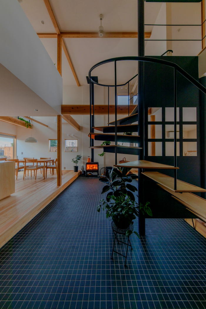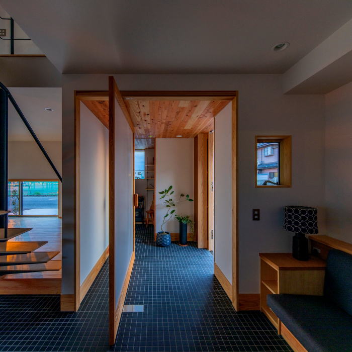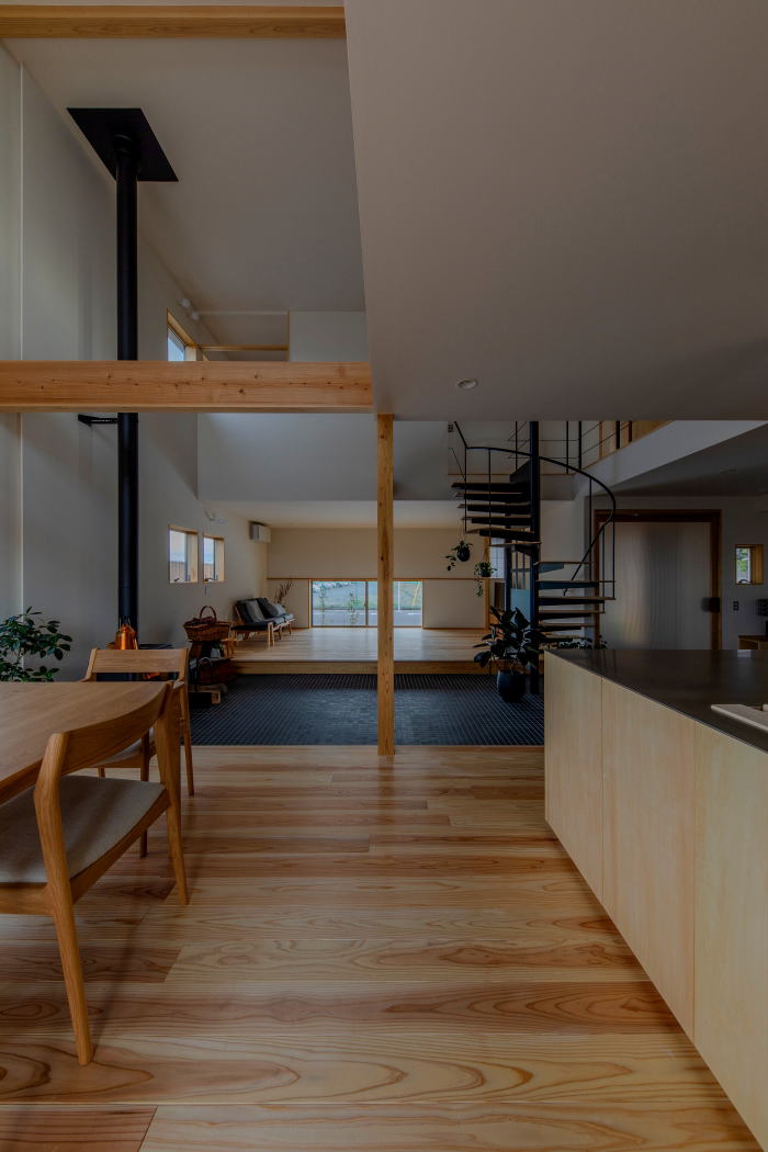 このすまいは、くらしの中に原風景のイメージを残しながら、土間のある空間をデザインした。